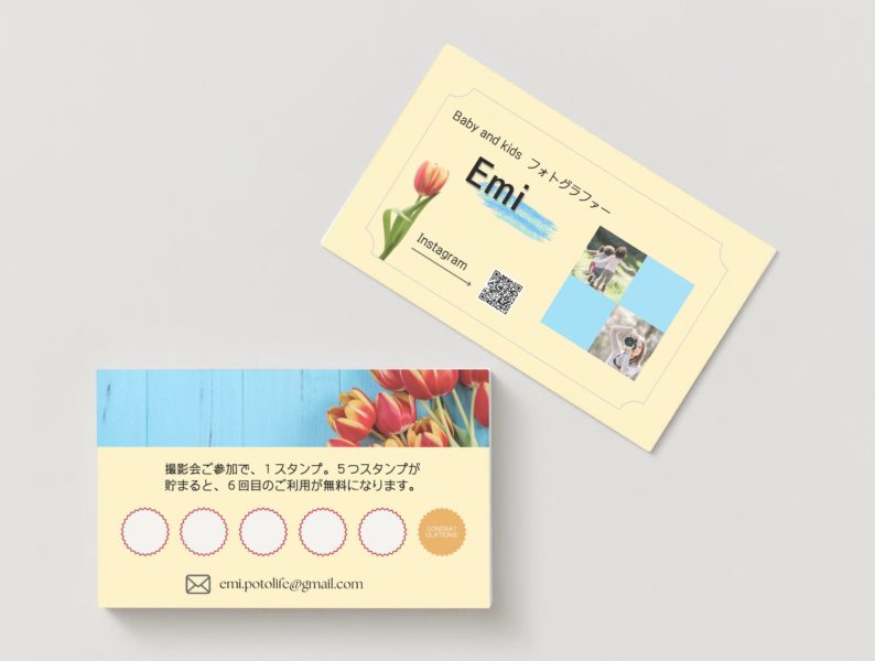 フリーランスカメラマンの名刺を可愛く仕上げます。